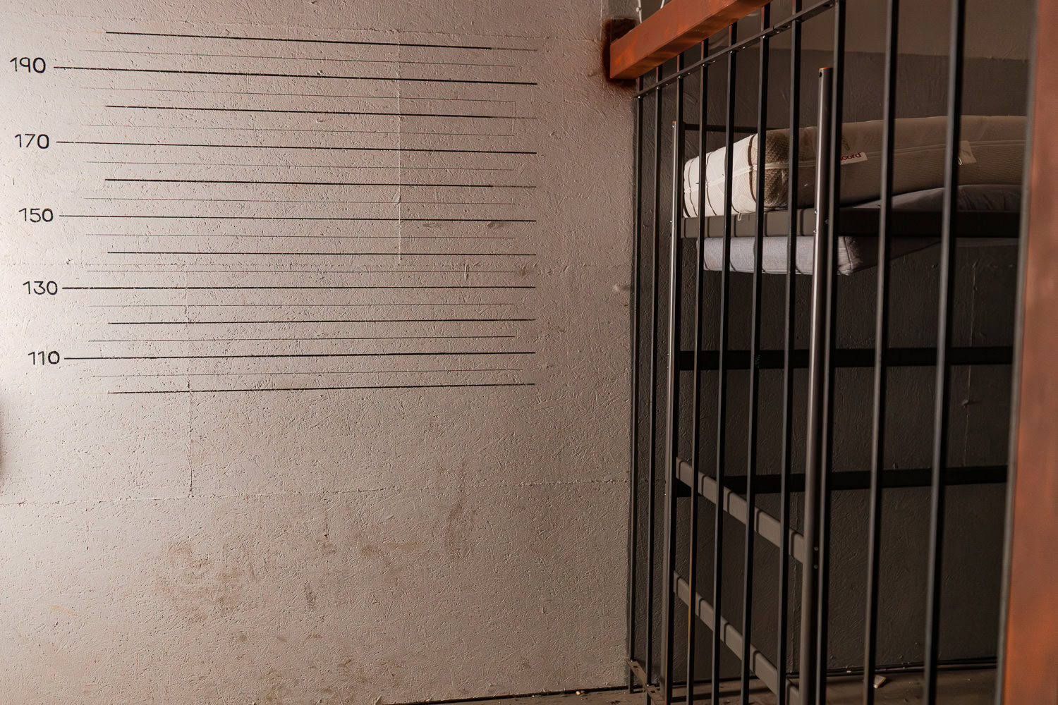 Linienwand im Stil einer reduzierten Mugshot-Szenerie