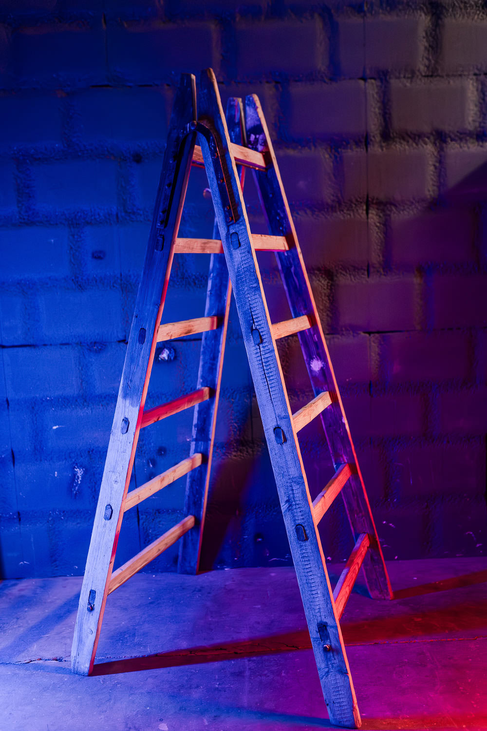 Schlichte Holzleiter als zentrales Element