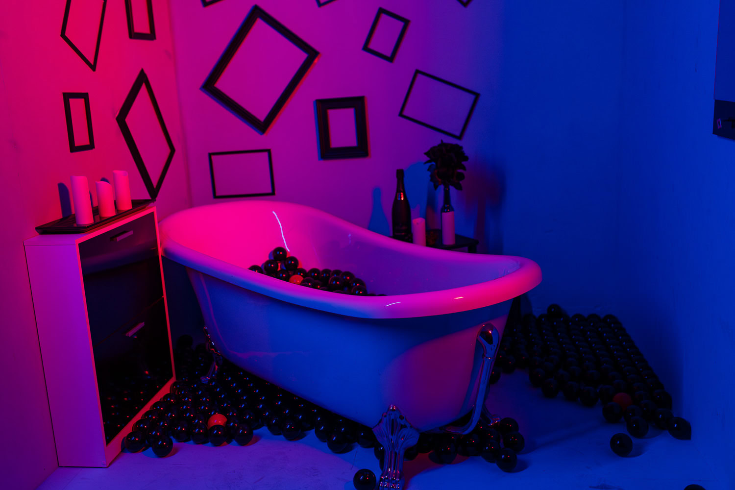 Schwarze und rote Bälle für Kontrast und Dynamik
